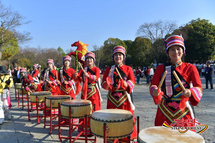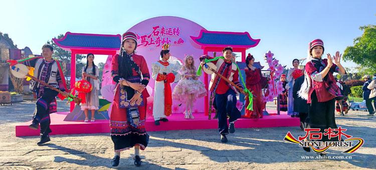沿途彝家原生态文化展示在石林湖、石林胜景、天然舞场等地精彩呈现,大三弦欢快奏响,民俗歌舞热情飞扬,浓郁彝乡风情与雄奇景观交相辉映。