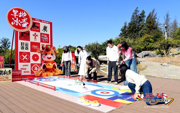 初一当天,各类新春活动轮番上阵、精彩纷呈。上午迎宾巡游盛装出发,身着绚丽彝家服饰的队伍穿行在奇峰怪石间,载歌载舞、送福送喜。